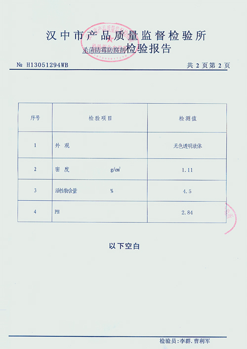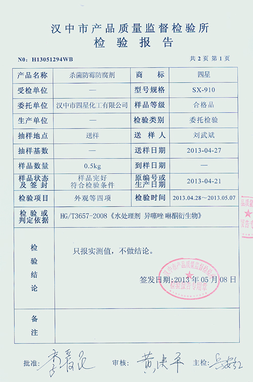 四星 殺菌防霉防腐劑SX-910(檢驗(yàn)報(bào)告)
